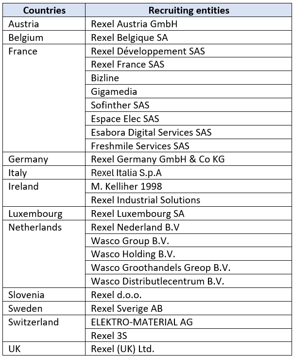 The relevant entity you applied for as referenced in the job description is the Data Controller (“Rexel”, “we” or “us”), i.e., the entity that determines the purposes and means of processing your personal data.